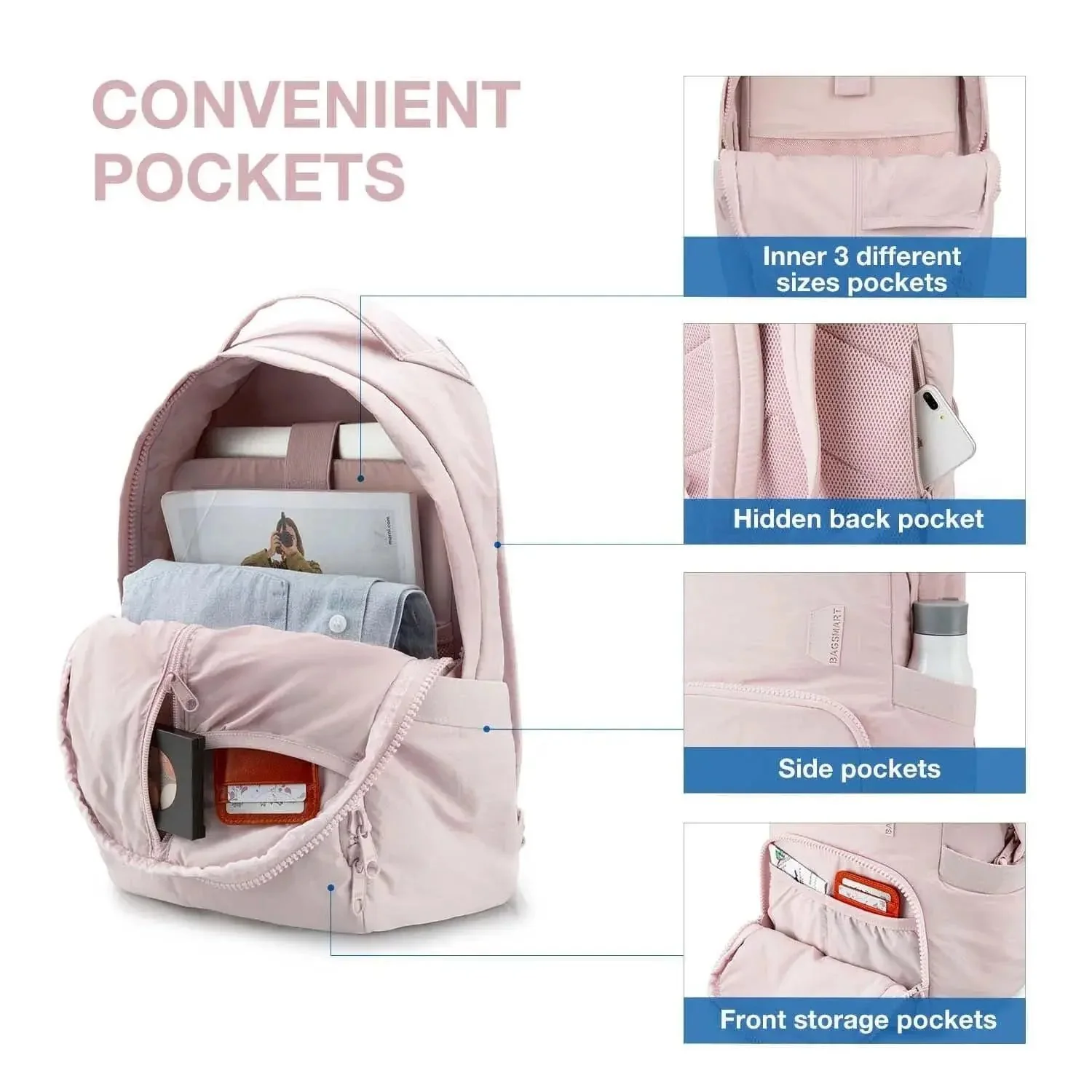 - ANTI-THEFT ZIPPER AND POCKETS: Keep your belongings safe with the anti-theft zipper and multiple pockets for umbrellas, water bottles, and small items.
